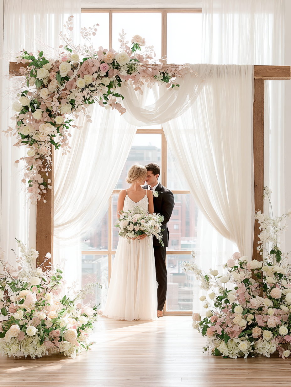 We style intimate wedding spaces with a soft and elevated approach, creating ceremony settings that feel refined, atmospheric, and deeply personal.